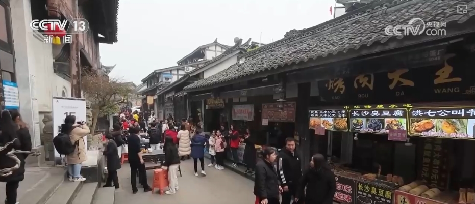 在年味满满的集市中,既有咸鱼酱鸭、特色水果、米糕腊肉等各色美食,也有老虎鞋、剪纸等特色商品,吸引了大批市民游客前来游玩、采购。春节期间,餐饮、特色民宿预定量增长明显,当地文旅市场持续升温。
