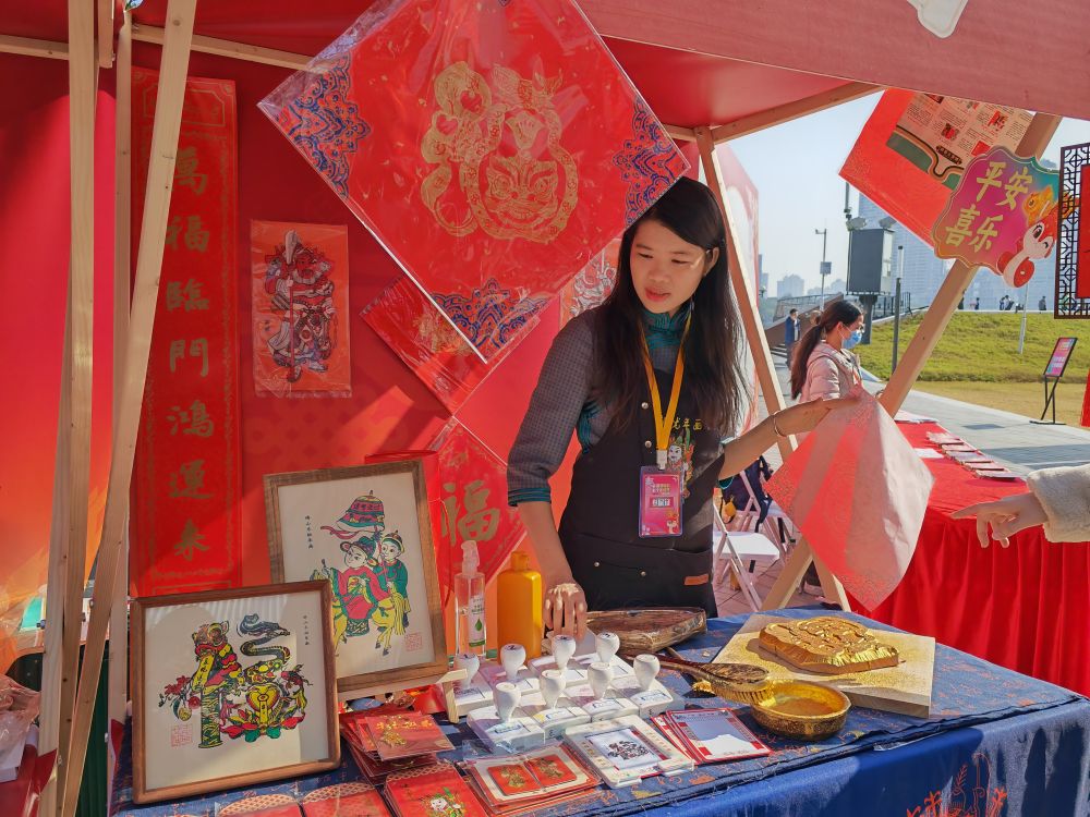 2025年1月18日,在广东省非物质文化遗产馆举办的2025年非遗年货大集上,刘钟萍展示佛山木版年画这一非遗技艺。新华社记者邓瑞璇 摄