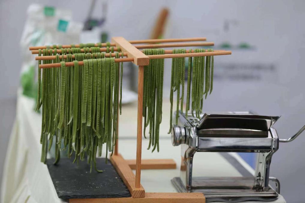 这是切割好的抹茶面条。新华社发