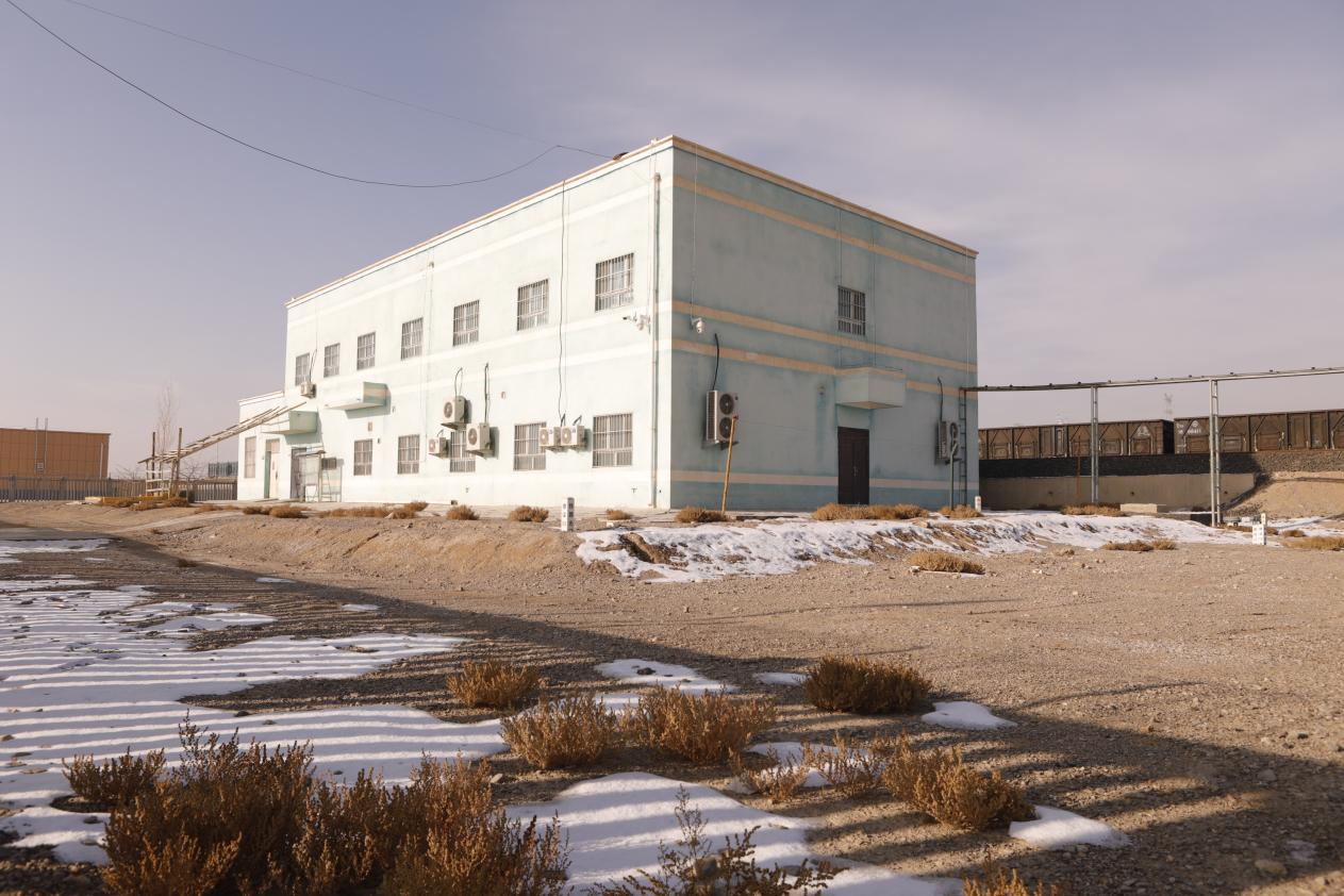 冰雪覆盖大地,天气阳光明媚。1月25日10时,汽车驶离国道后,在戈壁滩的一条小路上颠簸约两公里的路程,便到了萨特玛站。穿着笔挺制服、一脸笑容的车站值班员严伟打开了写着“安全生产”四个大字的铁皮大门。