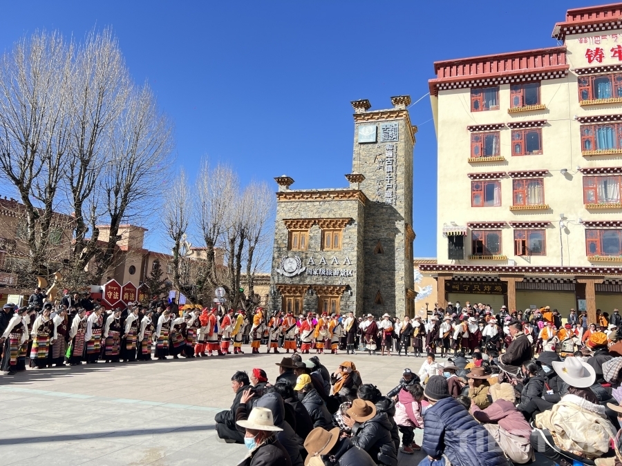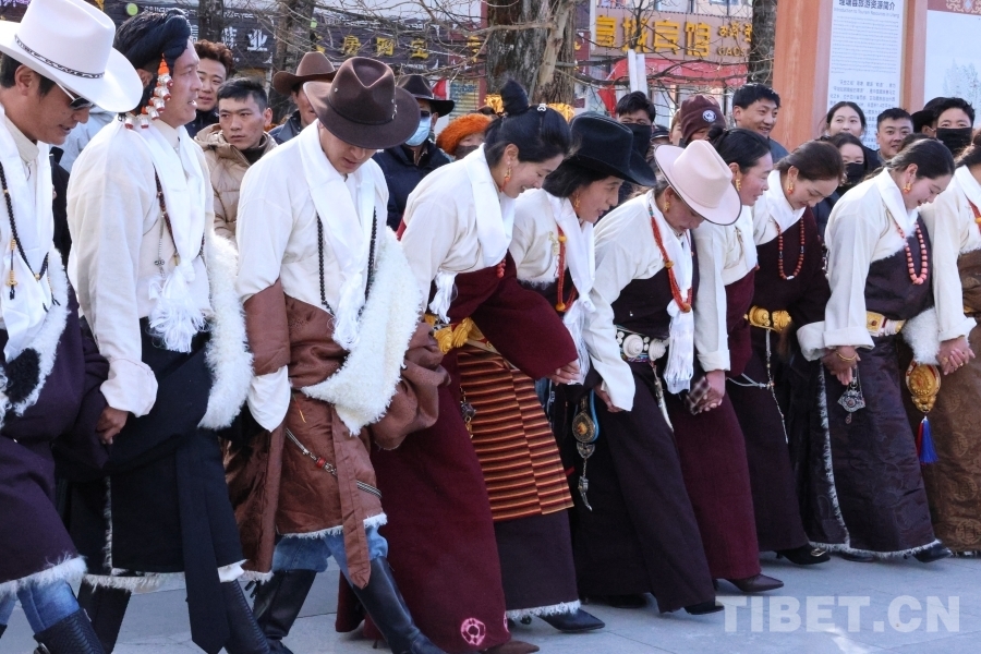 1月31日,大年初三,“民族团结一家亲 同心筑梦迎新春”锅庄表演在四川省甘孜藏族自治州理塘县新时代文明实践广场举行,来自全县各乡镇的数百名群众欢聚广场,跳起传统锅庄欢乐过新年。