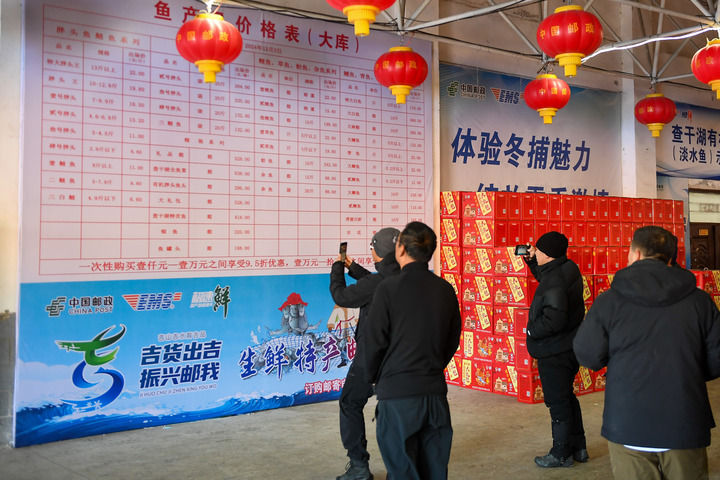 在“鱼墙”旁边,密集地分布着各个电商和物流公司。选好的鱼可以送到这里,装箱发往全国各地。查干湖冬捕如今也搭上了网络直播销售的潮流,办起了线上冬捕节等活动,以时尚化、趣味化的方式吸引更多年轻消费者。