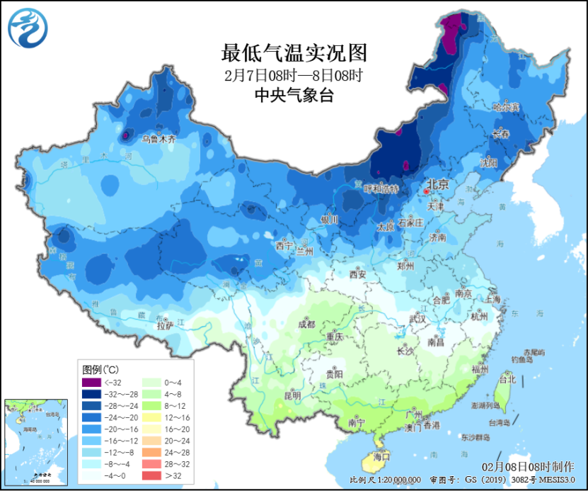 由于本轮寒潮对我国的影响趋于结束,中央气象台今晨解除了寒潮蓝色预警。预计未来24小时,在内蒙古东北部、黑龙江北部和西部等地部分地区仍有4~6℃降温,黑龙江西南部和东北部等地部分地区降温可达8~10℃,东北地区东部有小到中雪,南方雨雪主要出现在四川、云南等地。
