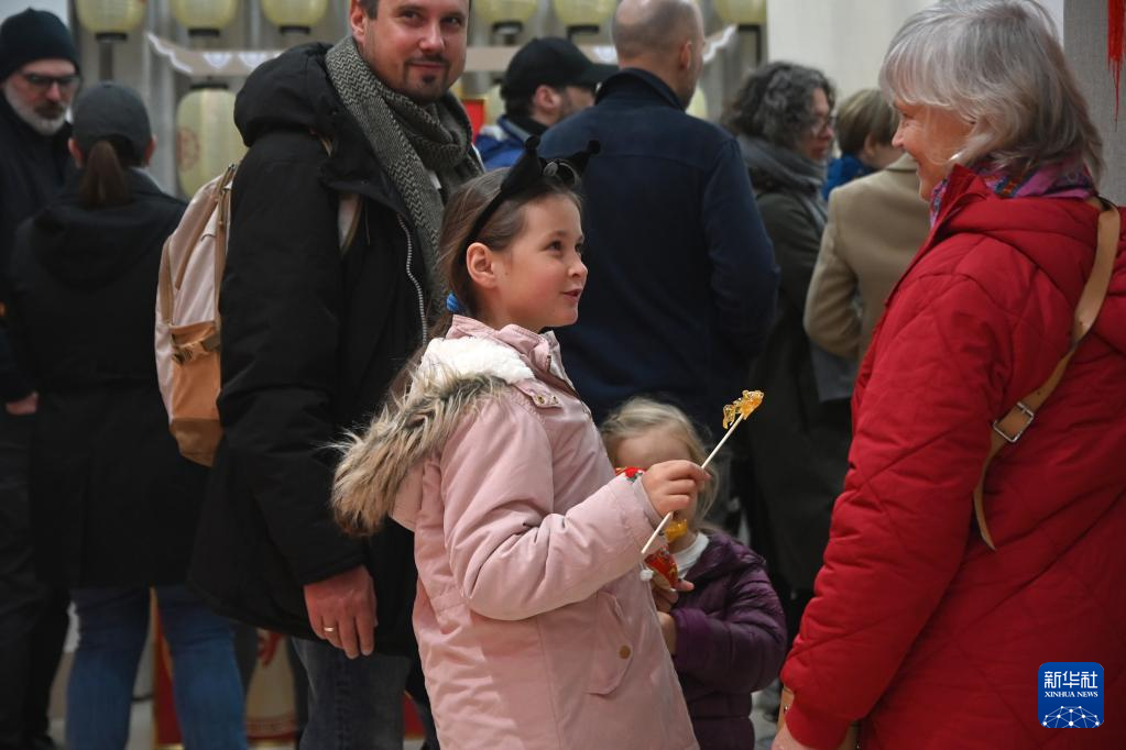 2月8日,一个女孩在马耳他瓦莱塔中国文化中心举行的“欢乐春节”庙会上参观。新华社发(乔纳森·博格摄)