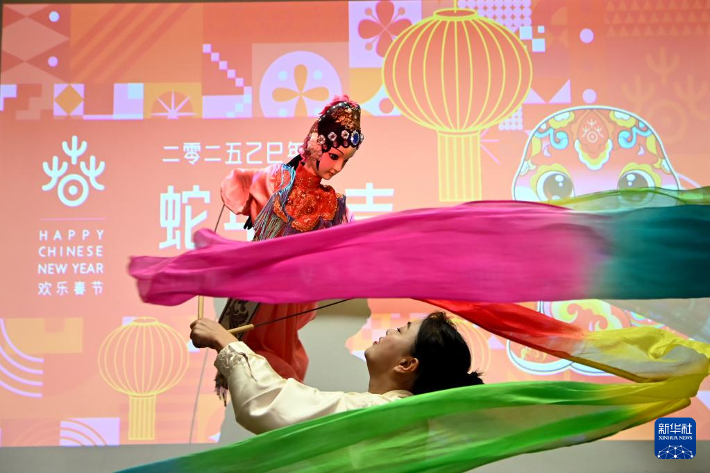 2月8日,艺术家在马耳他瓦莱塔中国文化中心举行的“欢乐春节”庙会上进行木偶戏表演。新华社发(乔纳森·博格摄)
