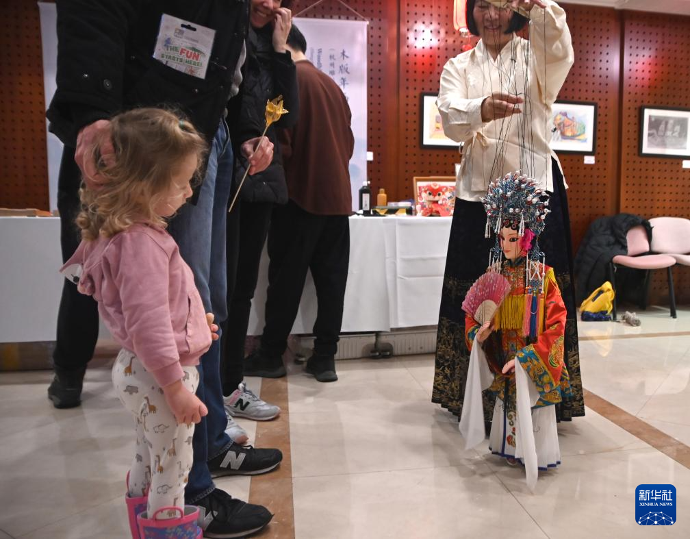 2月8日,在马耳他瓦莱塔中国文化中心举行的“欢乐春节”庙会上,艺术家为当地观众演示木偶。新华社发(乔纳森·博格摄)