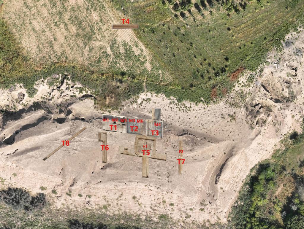 乌兹别克斯坦蒙扎铁佩遗址探方及遗迹分布图。