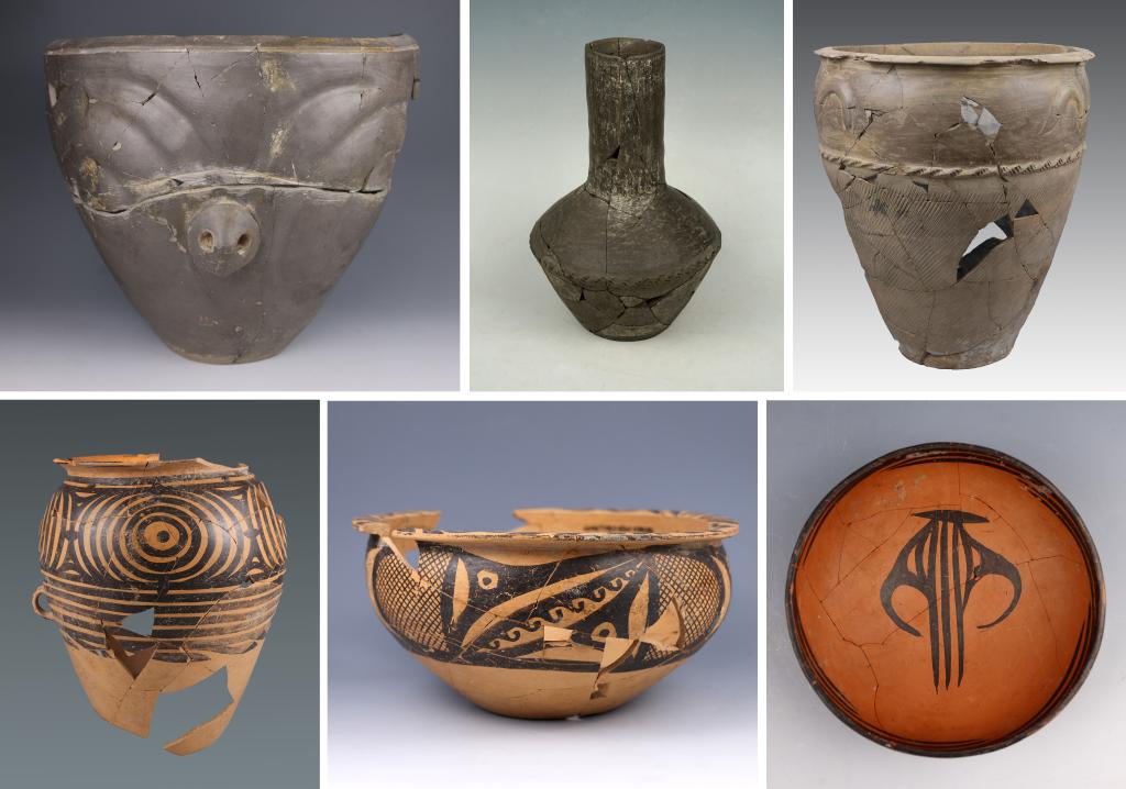 甘肃临洮县寺洼遗址出土的陶器(拼版照片)。