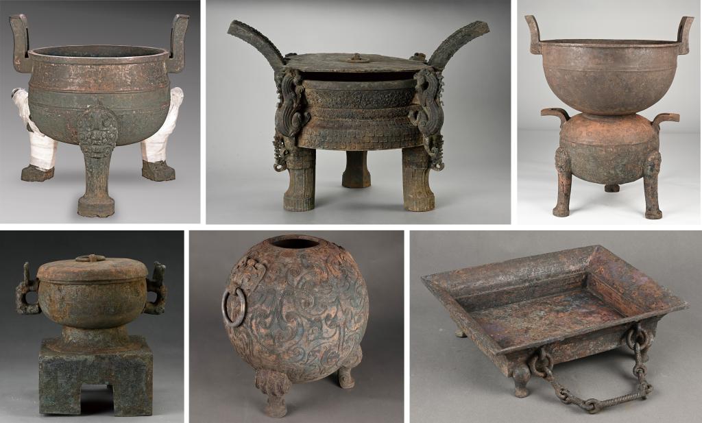 安徽淮南市武王墩战国晚期一号墓出土的铜器(拼版照片) 。