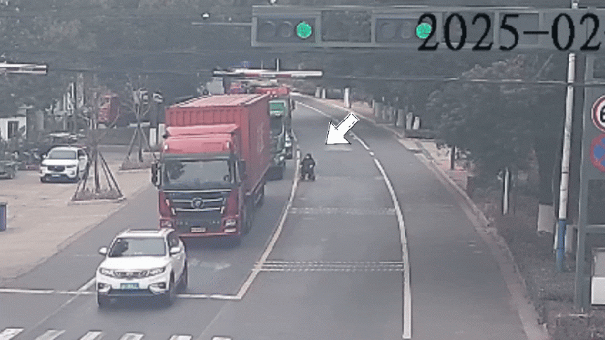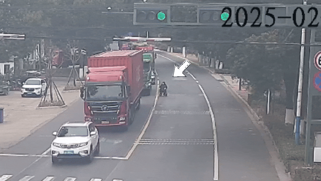 江苏常州一个路口发生惊险一幕