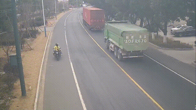 要注意和货车保持足够的横向距离