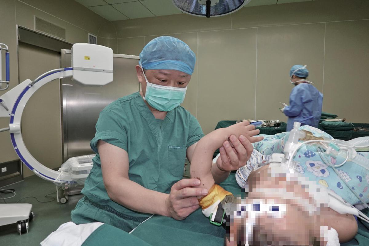 今年2月,任秀智给一个瓷娃娃患者做术前检查。 受访者供图