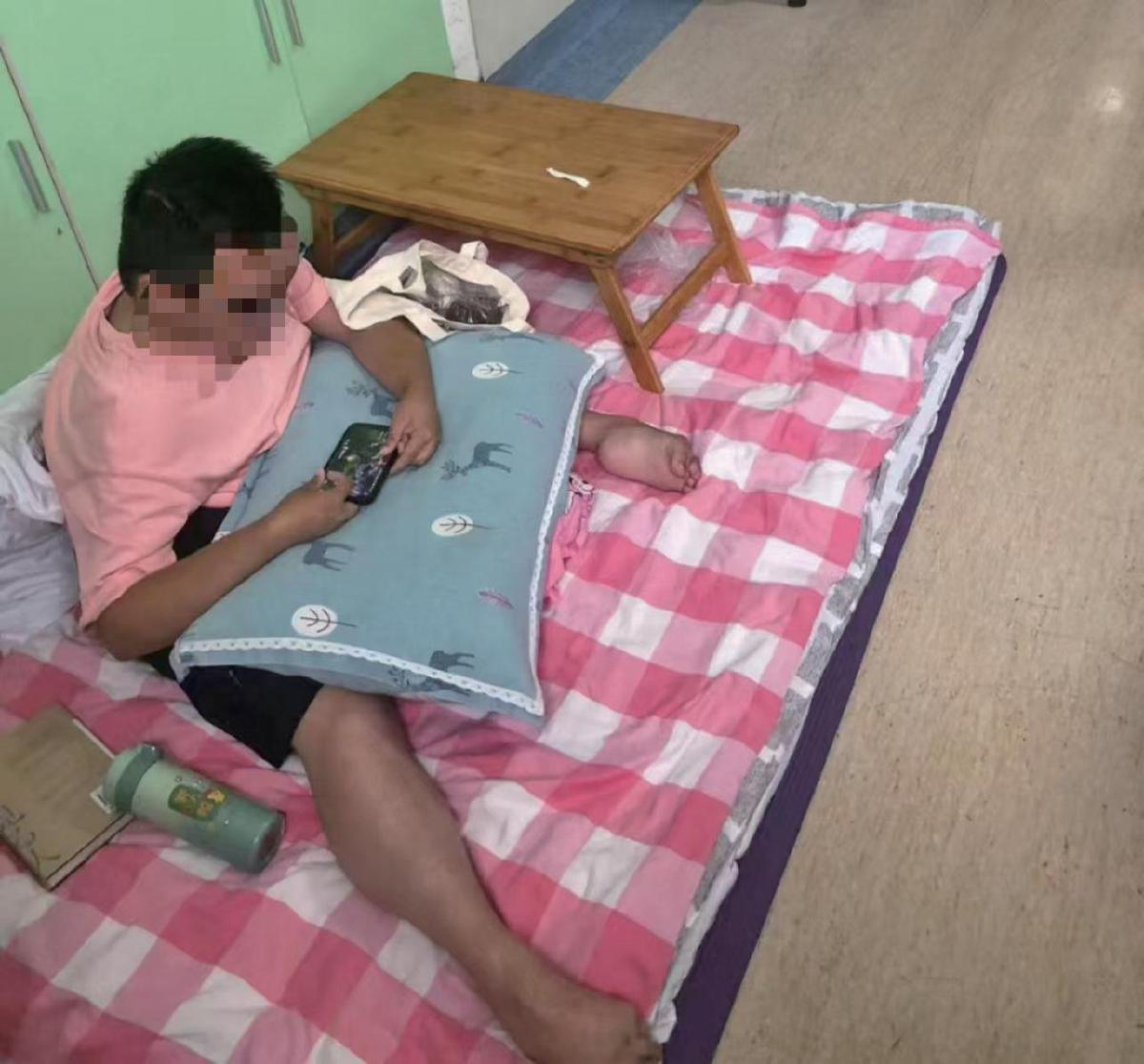 去年高考后,成年的董睿在某医院儿科病房打地铺。 受访者供图