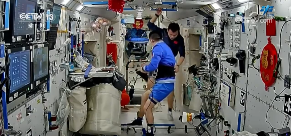 在健康维护与保障方面,乘组按计划完成了常规医学检查与运动肺功能检查,并使用中医四诊仪、骨密度测量仪等仪器设备对健康状态进行检测与评估。此外,三名航天员利用太空跑台、腕力球、握力器、骨丢失对抗仪等设施设备定期开展运动锻炼、进行失重防护,对抗长期在轨对人体骨骼、肌肉的影响。