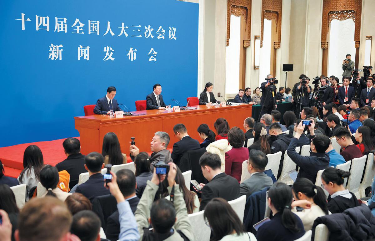 3月4日,十四届全国人大三次会议在北京人民大会堂举行新闻发布会。摄影/新京报记者 薛珺
