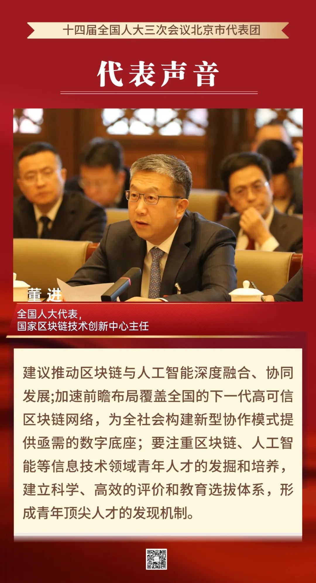 来源标题:【聚焦全国两会】代表声音丨董进:推动区块链与人工智能协同发展