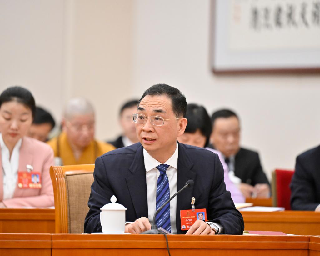 3月5日,全国人大代表吴贤德在福建代表团全体会议上发言。
