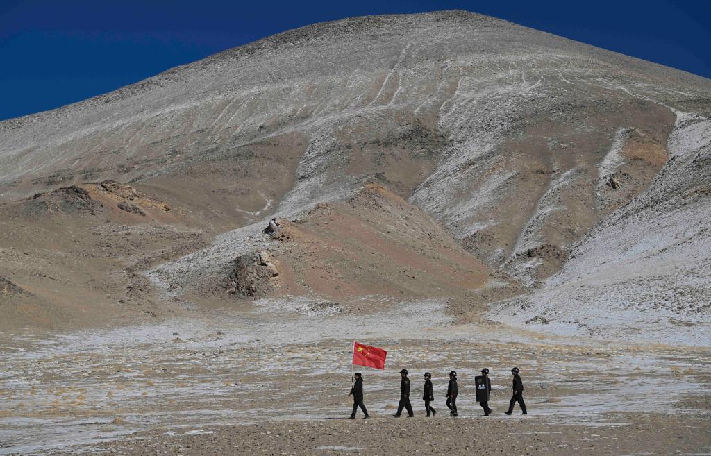 1月9日,多来提曼·开米克(左一)与护边员一起巡边。