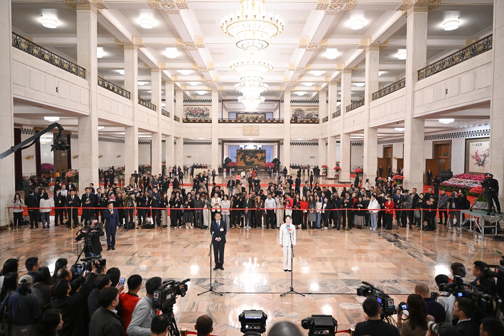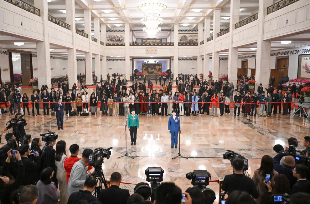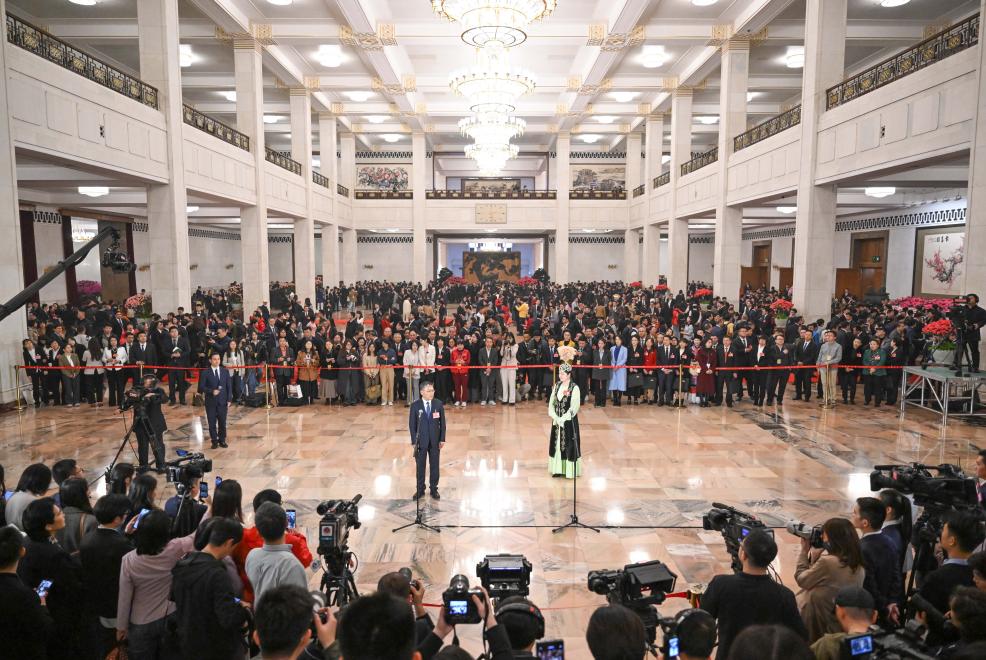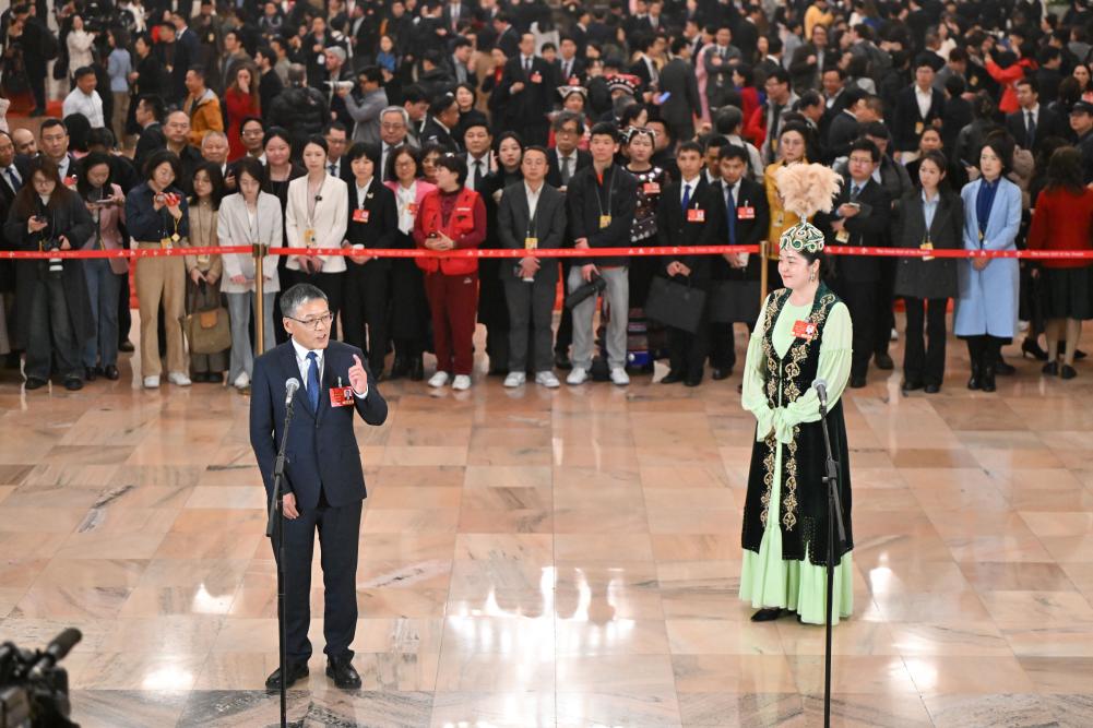 3月11日,第十四届全国人民代表大会第三次会议第三场“代表通道”集中采访活动在北京人民大会堂举行。新华社记者 胥冰洁 摄