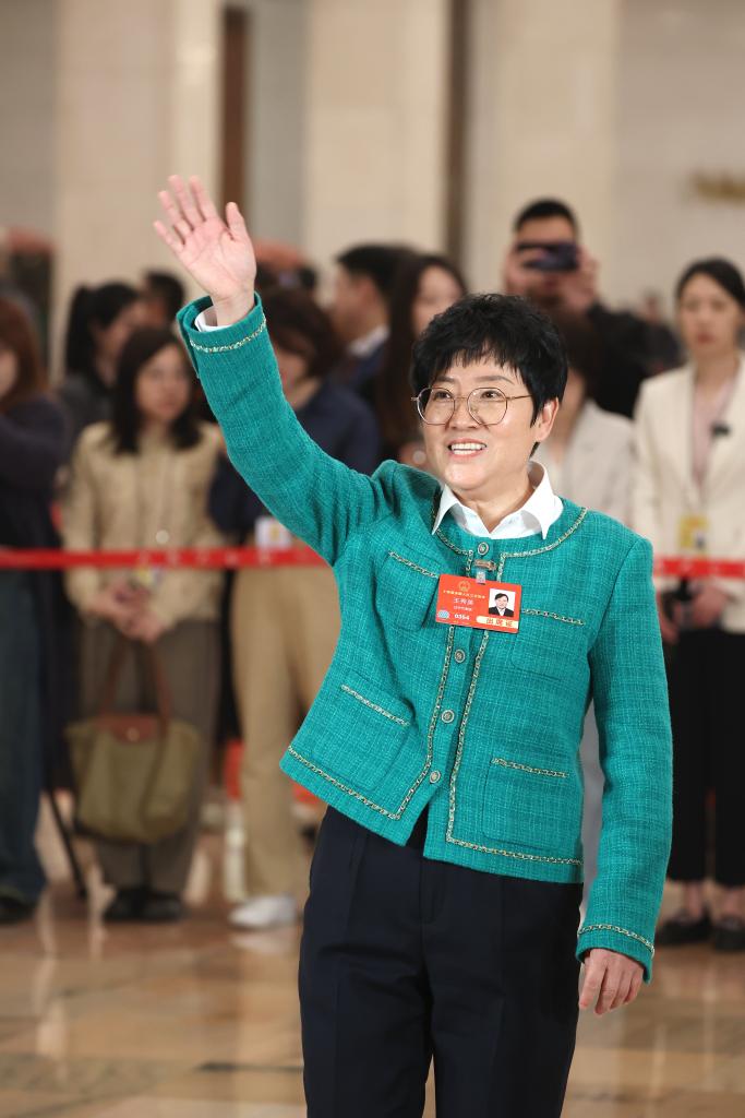 3月11日,第十四届全国人民代表大会第三次会议第三场“代表通道”集中采访活动在北京人民大会堂举行。这是全国人大代表王秀英入场。新华社记者 卢烨 摄