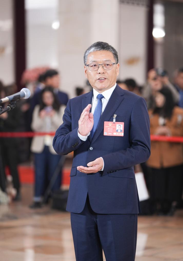 3月11日,第十四届全国人民代表大会第三次会议第三场“代表通道”集中采访活动在北京人民大会堂举行。这是全国人大代表赵昭接受媒体采访。新华社记者 胥冰洁 摄