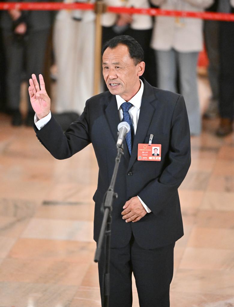 3月11日,第十四届全国人民代表大会第三次会议第三场“代表通道”集中采访活动在北京人民大会堂举行。这是全国人大代表樊九平接受媒体采访。新华社记者 胥冰洁 摄