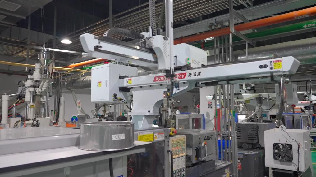 在蜂蜜香气的吸引下,一头头奶牛走向无人挤奶机,机械臂灵敏地进行消毒、套杯、挤奶,新鲜牛奶便源源不断生产出来。