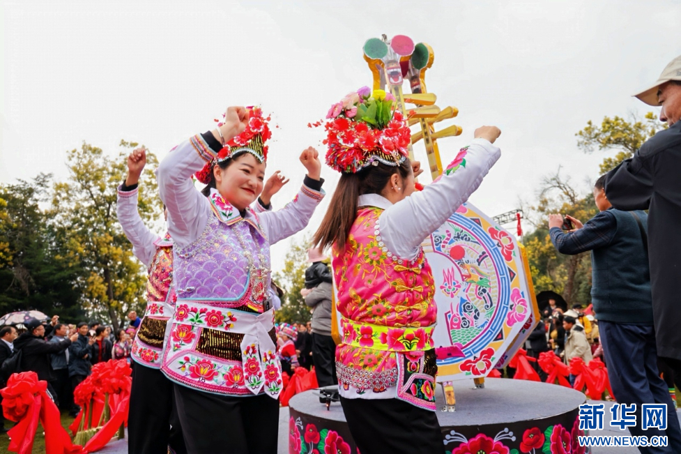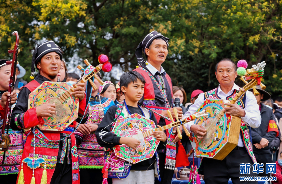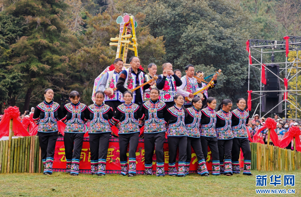 云南大理祥云天峰山歌会现场,群众吹奏乐器(3月14日摄)。新华网发(供图)