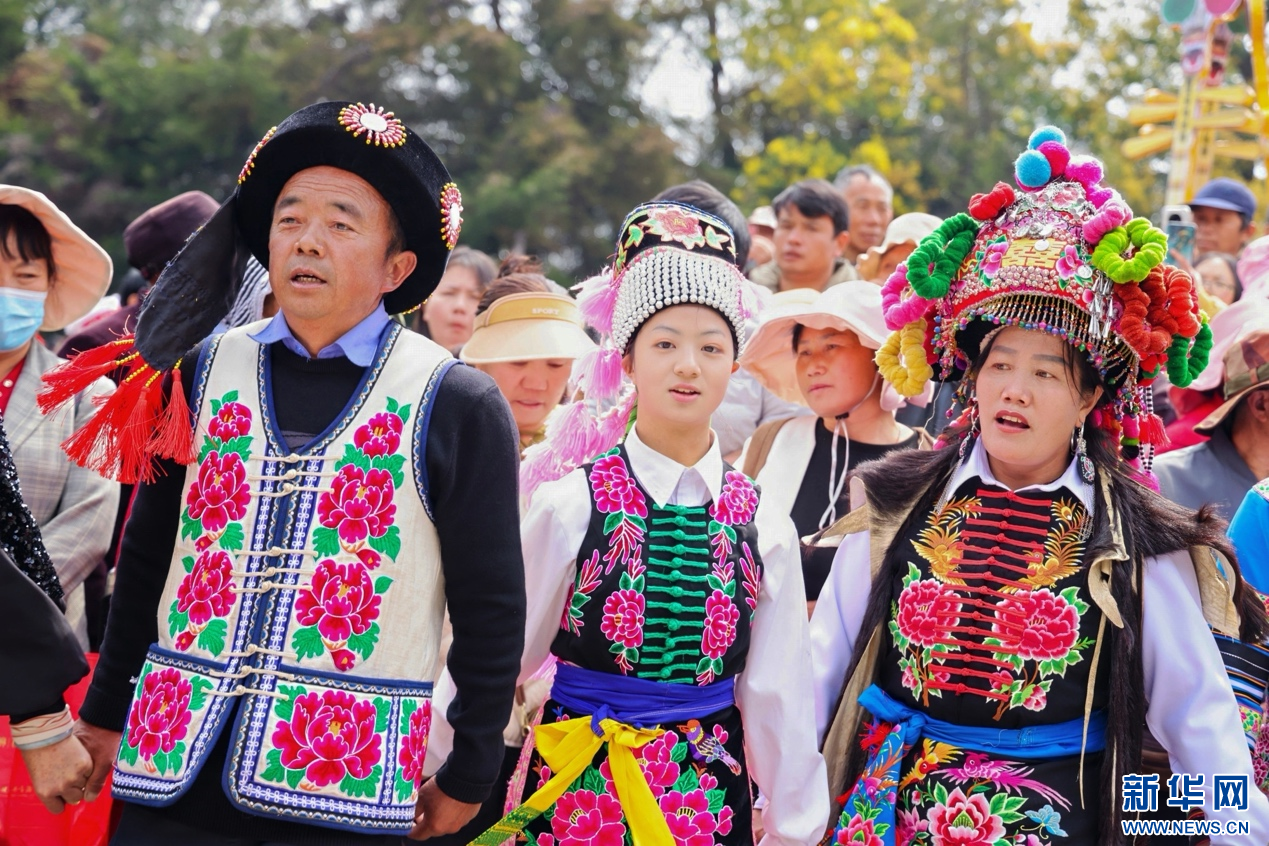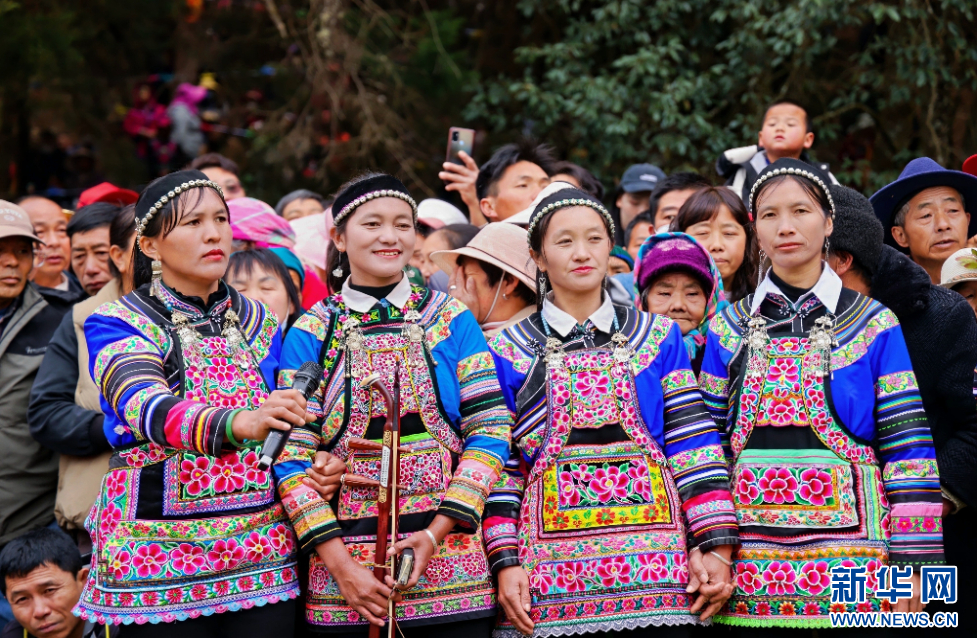 云南大理祥云天峰山歌会现场,群众身着绚丽的民族服饰(3月14日摄)。新华网发(供图)