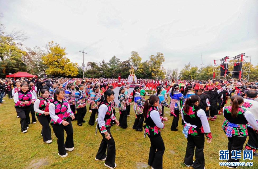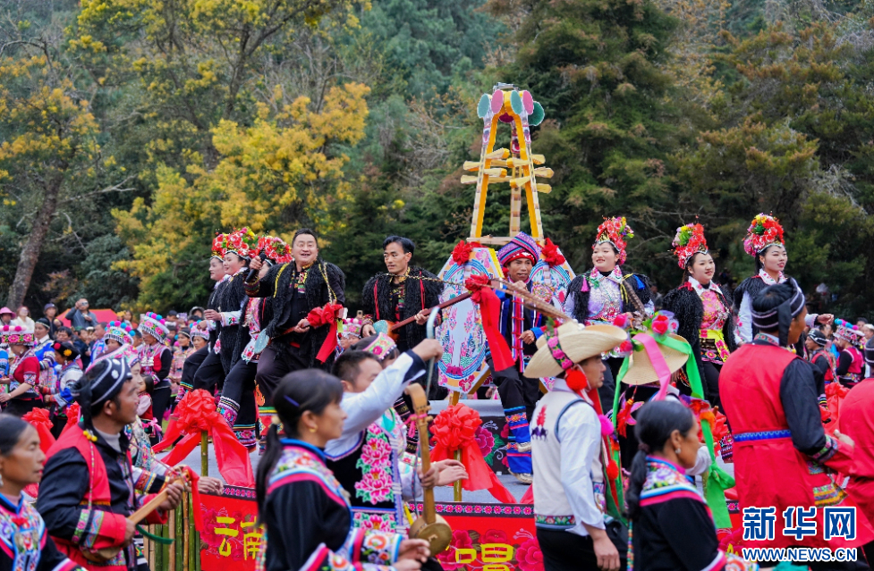云南大理祥云天峰山歌会现场,群众载歌载舞(3月14日摄)。新华网发(供图)