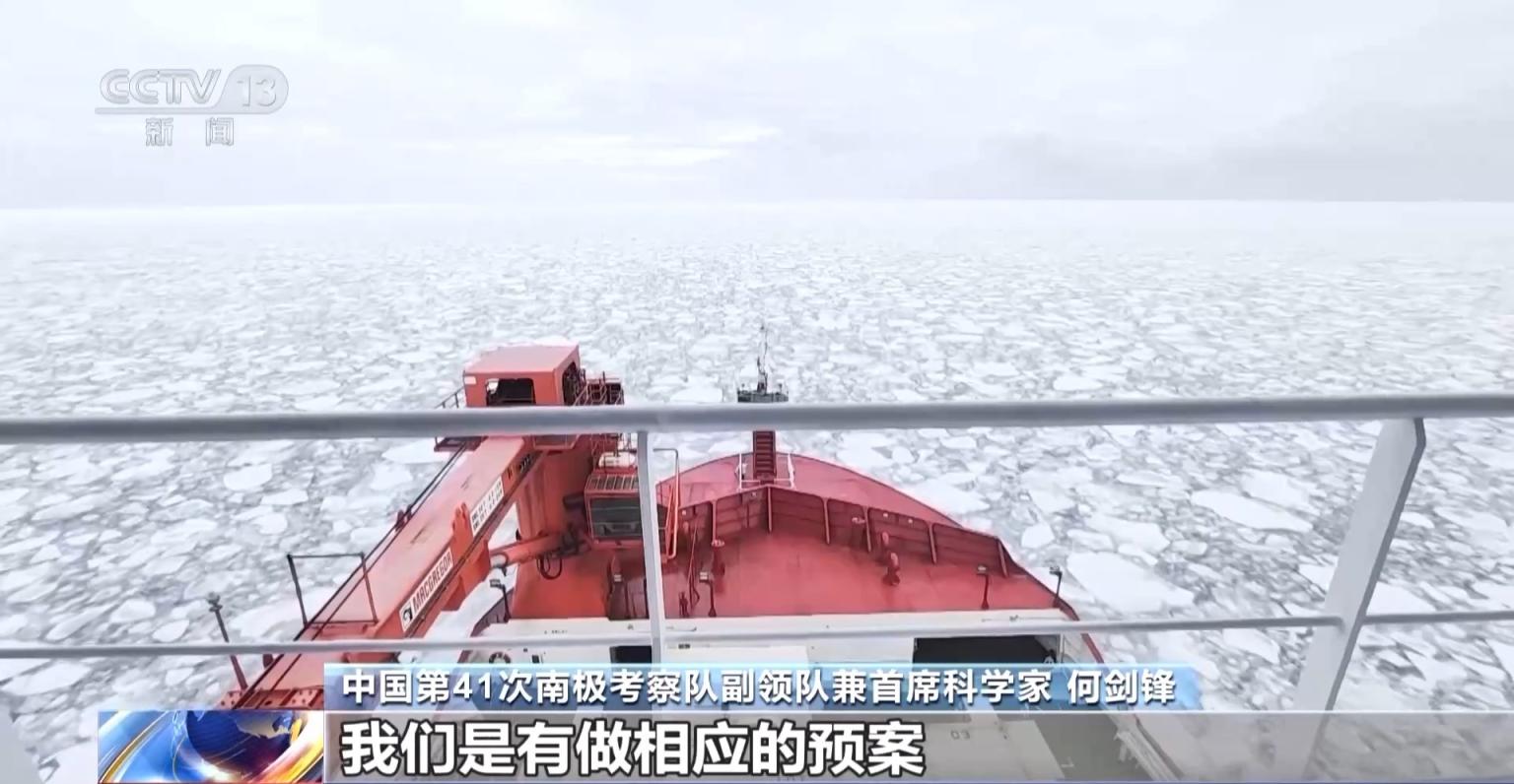 中国第41次南极考察队副领队兼首席科学家 何剑锋:除了冰间湖之外,其他地方海冰应该是完全覆盖的。所以在冰区作业,类似于设备的布放、拖网等,其实都面临着一些困难。我们有做相应预案。