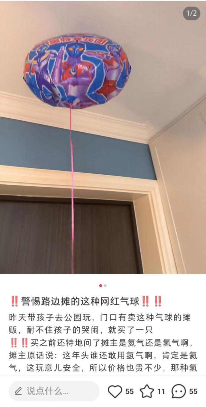 一天,孩子拿着气球玩儿,和正在运行的风扇发生摩擦,气球冒起火星,把家里人都吓了一跳。“许多人在评论区告诉我,氦气成本高,大街上小商贩卖的气球大多是氢气球,下次不买了。”李颖说。