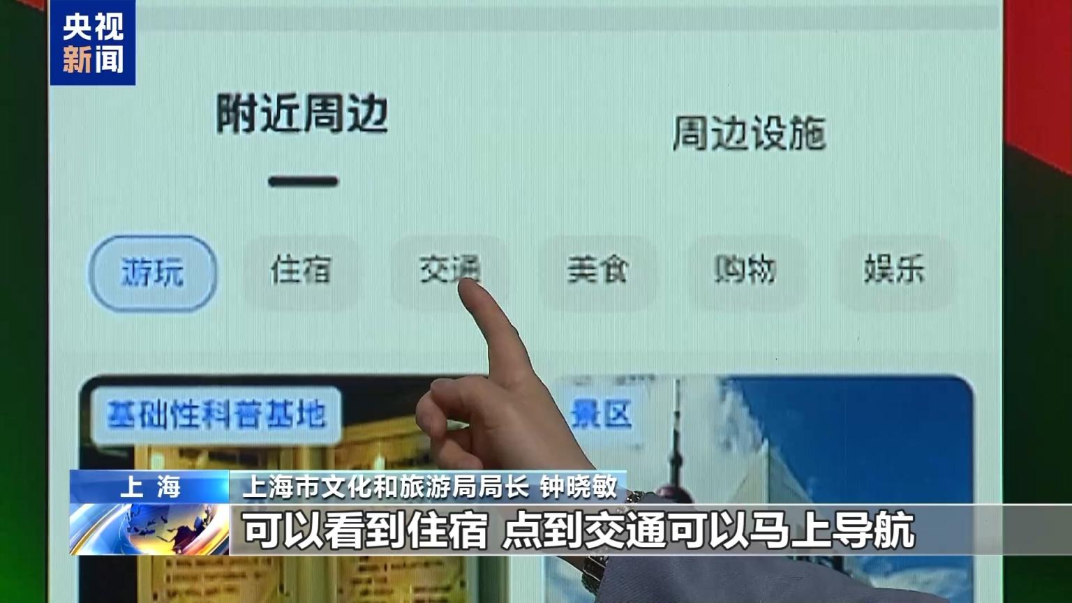 上海市文化和旅游局局长 钟晓敏:可以看到住宿,点到交通,可以马上导航,美食、购物和娱乐,把这个景点周边的“吃住行游购娱”,都一并推荐给大家。