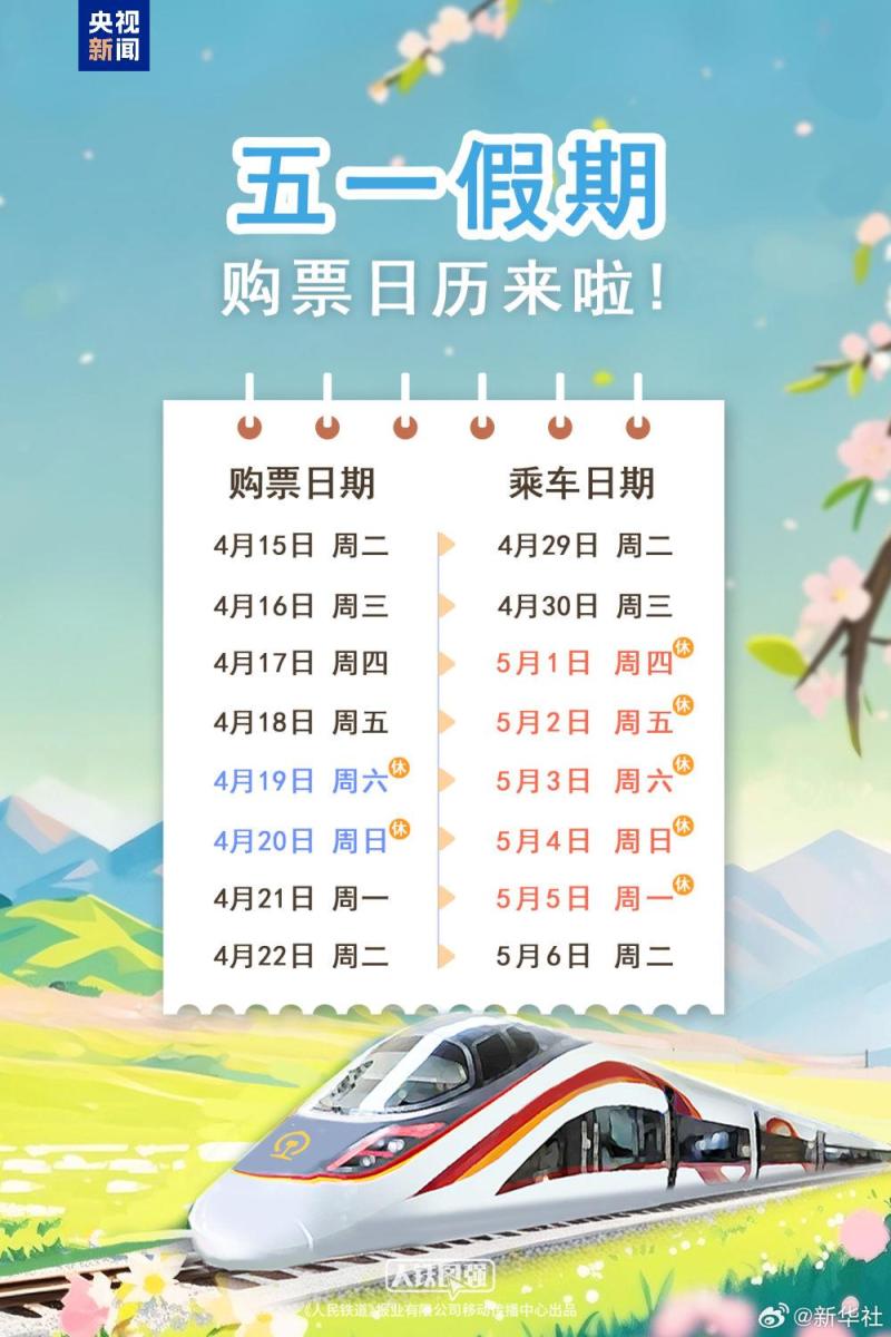 来源标题:明日可买五一当天火车票!购票日历保存好→