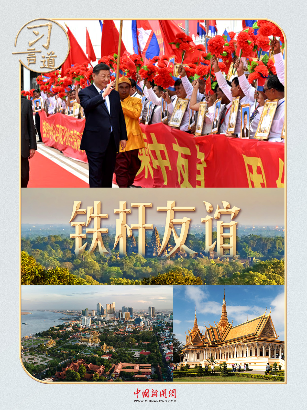 今次访问柬埔寨,习近平主席表示,“我坚信,在双方共同努力下,历经岁月洗礼和风雨考验的中柬铁杆友谊一定会初心如磐、成色十足。”