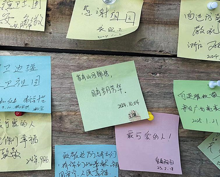 彭明有始终记得这样一件事:2023年,派出所开展“老兵回营”活动,60多岁的老兵一眼就从老照片里看到了当年的战友,“这是大队长沈文斌,这是战士高耀武,这是乔彤云……”老兵喃喃自语,一边抚着照片,一边叫着战友的名字。突然,他转身对彭明有敬了一个庄严的军礼。临走前,他在“戍边墙”上刻了字:忠魂永驻。