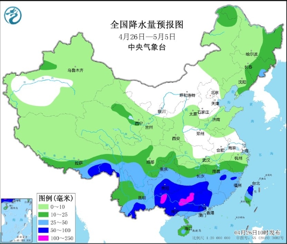 4月26日至5月5日降水量预报图。图片来源:中央气象台
