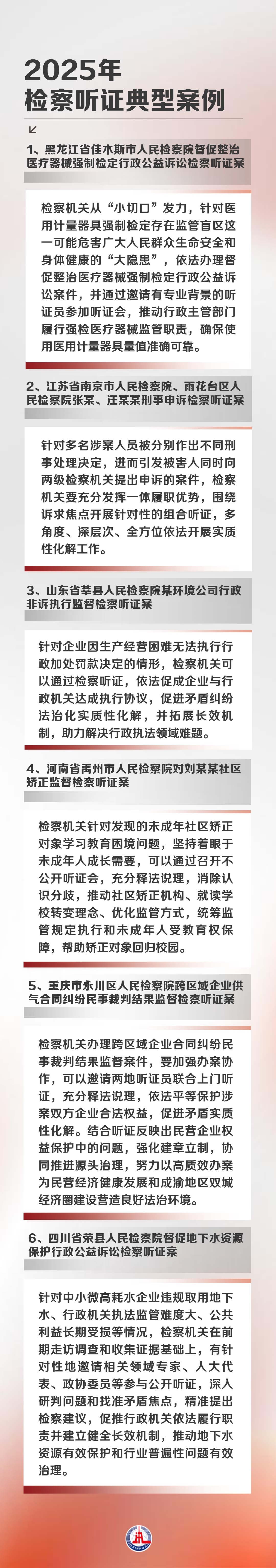 日前,最高人民检察院发布2025年检察听证典型案例,共6件。