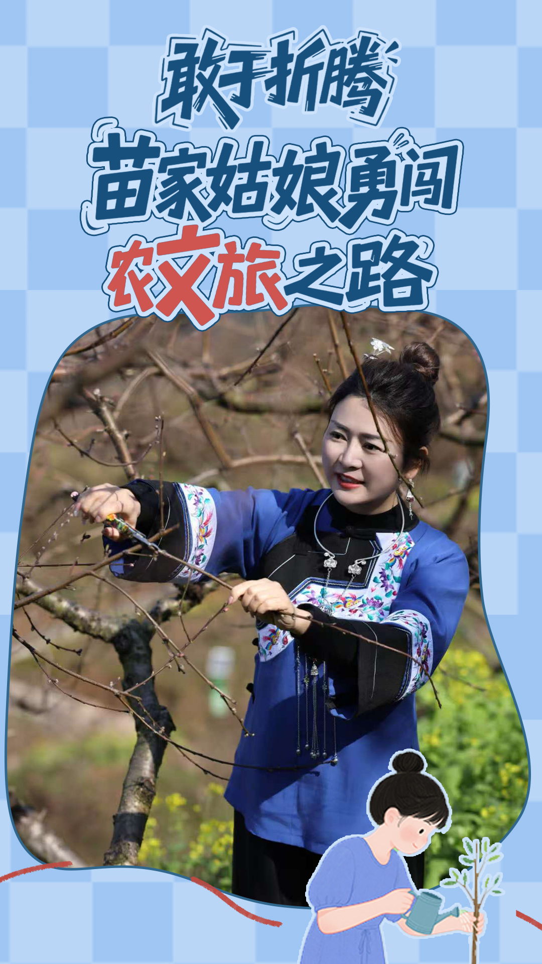 在经营团队里,有一群年轻人,他们也和谭霞一样,在敢想敢闯的年纪返乡。不善言辞的黄玉把果园管护得井井有条,谭霞支持她发展电商,拓展水果的销路;不甘心在花灯戏剧团当配角的田亚玲发挥艺术特长,精心筹备苗家篝火晚会,为游客带来难忘的体验;创业受阻的潘森带着游客开展研学、团建,为再次创业积攒经验。