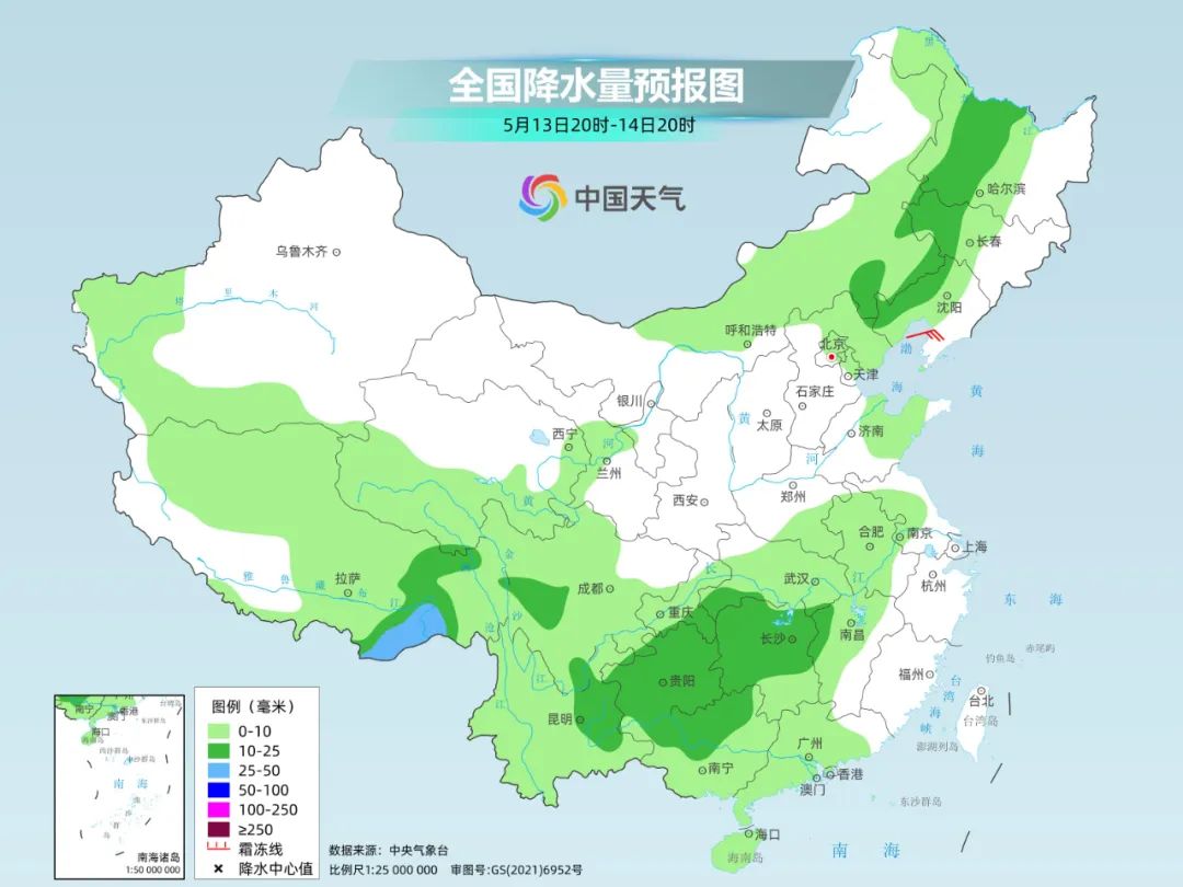 预计13日至14日,华北、黄淮东部、东北等地将有小到中雨,华北东部和黄淮东部局地伴短时强降水、雷暴大风或冰雹等强对流天气。