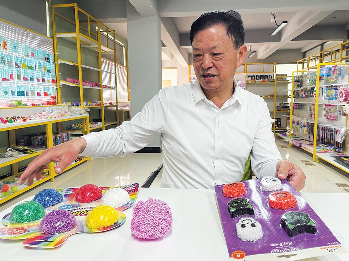 4月29日,梦成玩具负责人成正仁介绍工厂所生产的玩具。