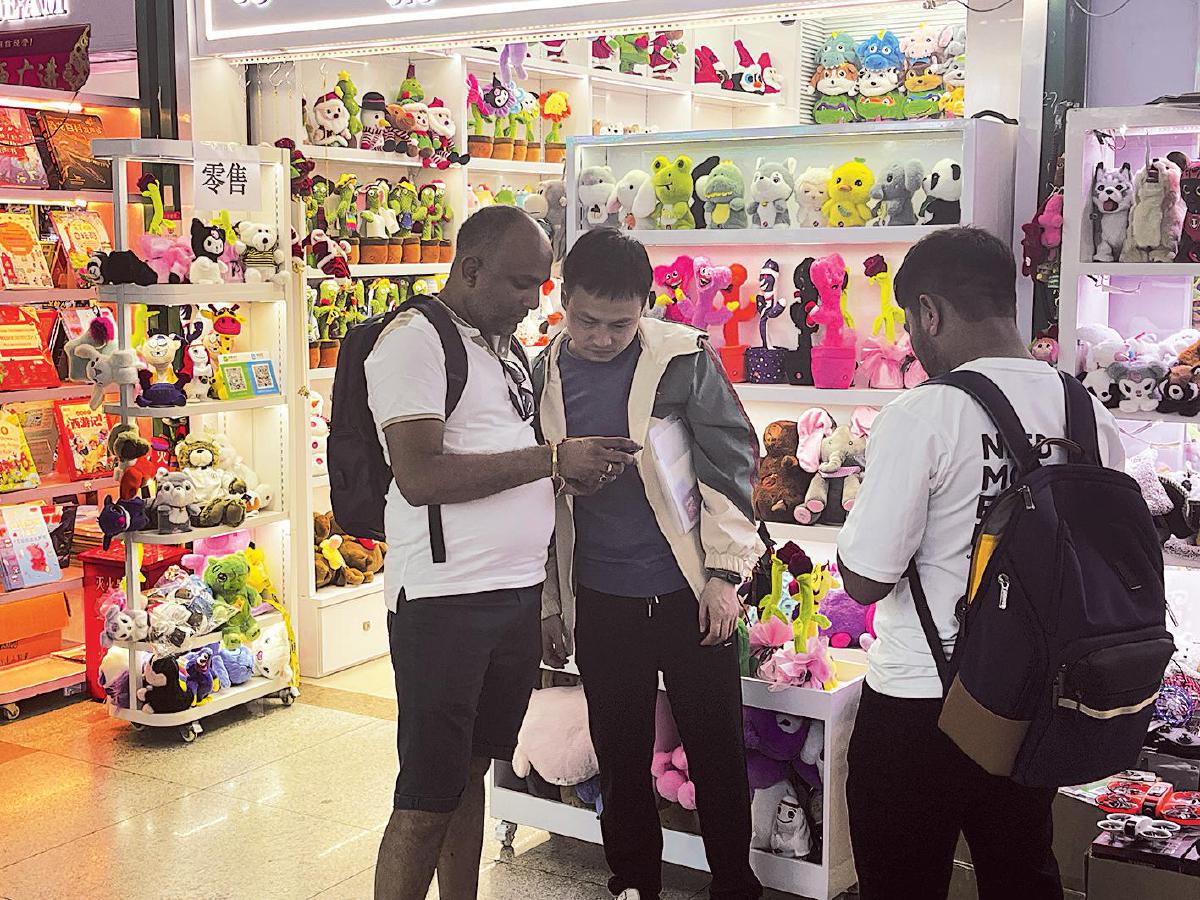 义乌国际商贸城里,外国客户正在挑选货物。
