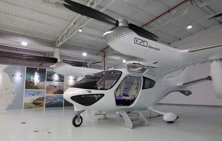 2024年11月15日拍摄的上海时的科技展厅内停放的E20 eVTOL飞机。新华社记者 方喆 摄