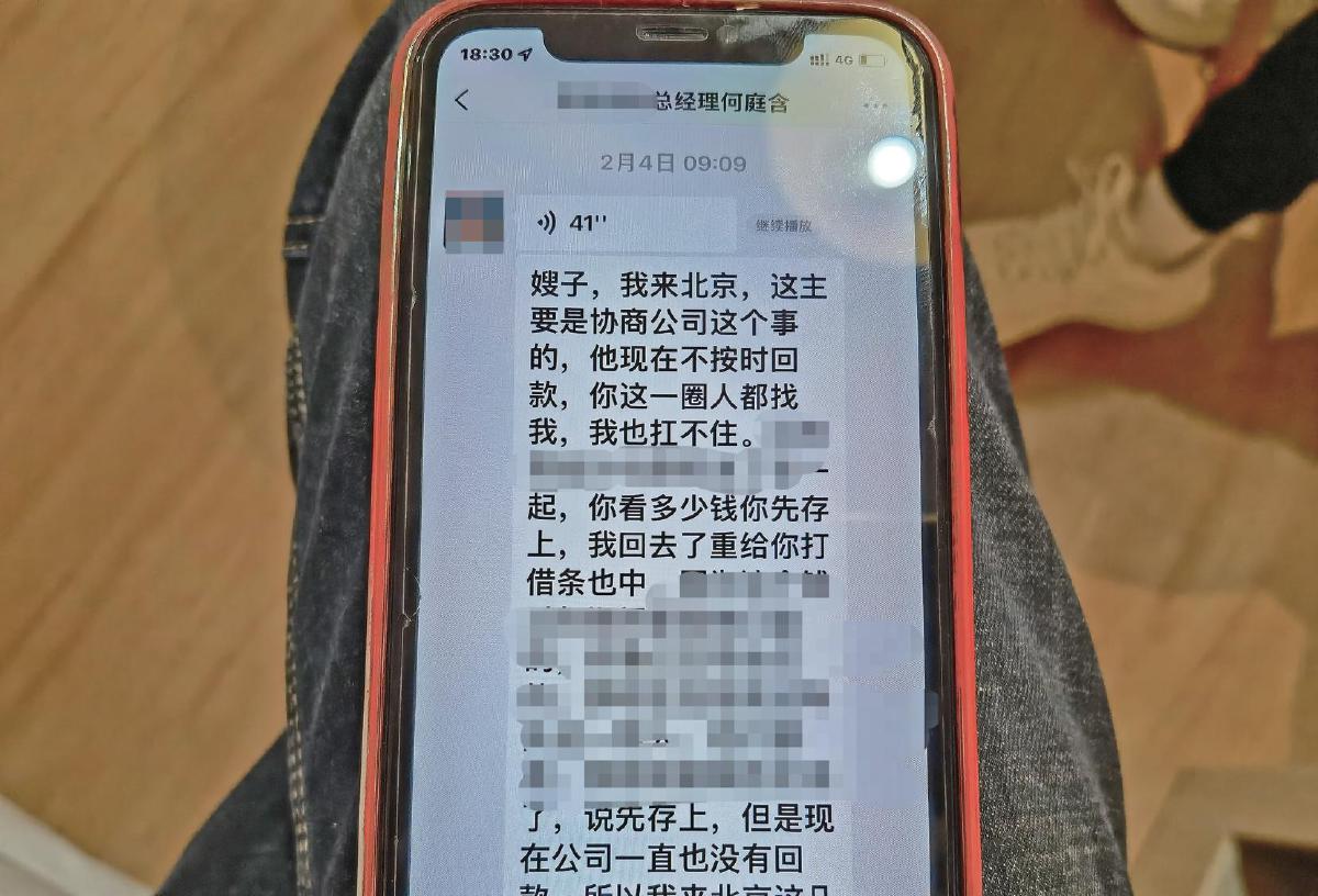 2023年2月,何庭含被催还贷时,谎称公司未按时回款导致断贷。新京报记者 程亚龙 摄
