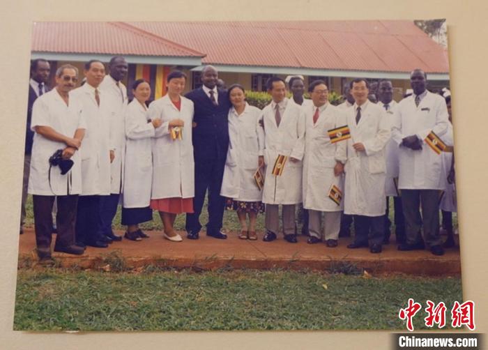 图为1998年,乌干达总统穆塞韦尼(中间着黑西服)看望中国医疗队照片。中新网记者陈晨 摄
