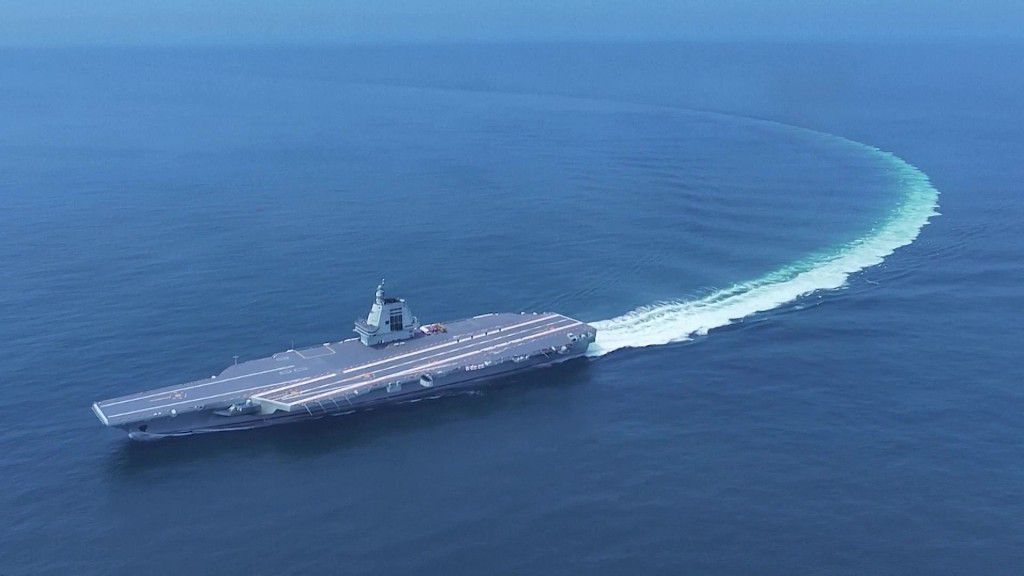福建舰:我是首艘弹射型航空母舰,目前正在加紧进行海试中。