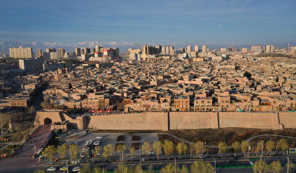 清晨的喀什古城(2023年3月10日摄,无人机照片)。新华社记者 李响 摄