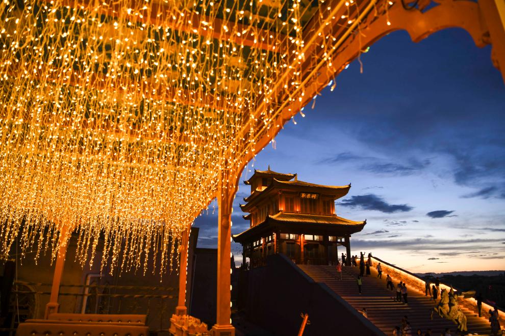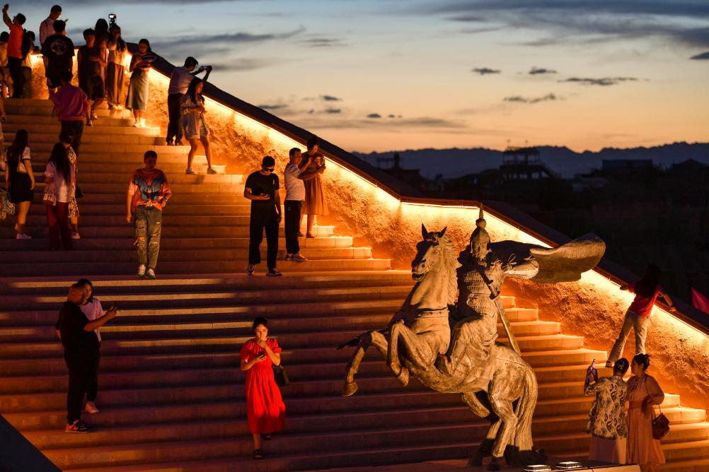 人们在新疆喀什市盘橐城景区内游玩(2023年6月14日摄)。新华社记者 胡虎虎 摄
