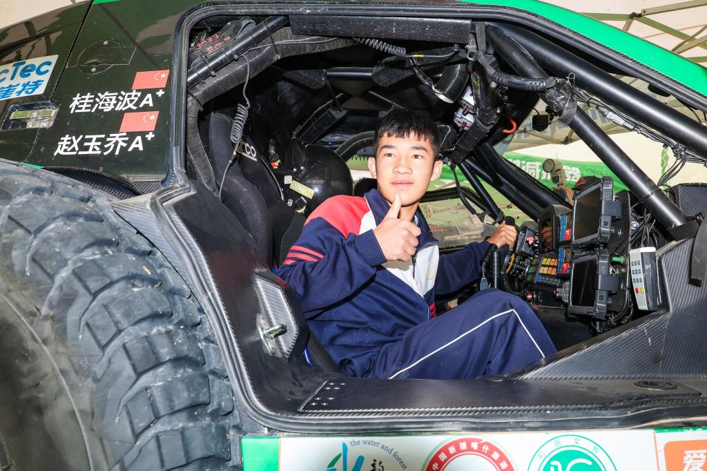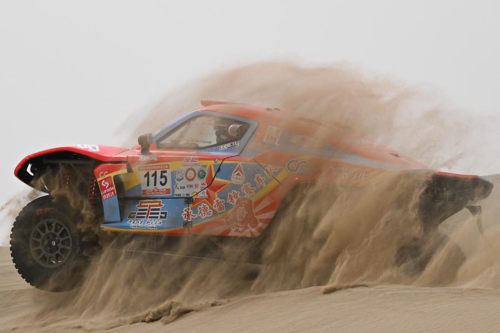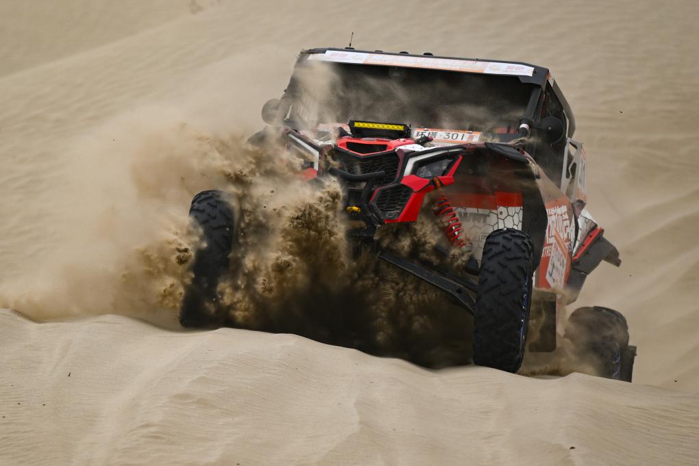 2025年5月31日,极道体育黑熊轮胎车队车手赵善鹏、领航员郭峰在比赛中。新华社记者 辛悦卫 摄