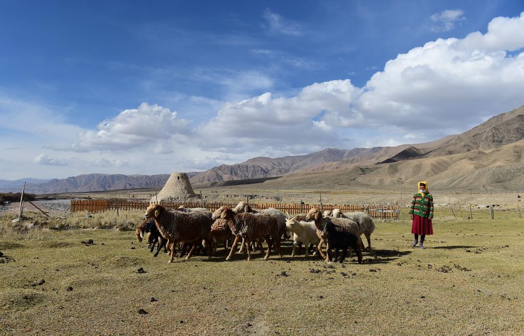 在新疆塔什库尔干塔吉克自治县,牧羊人在吉日尕勒文化遗址的亚尔特拱拜孜古驿站附近放牧(2021年5月3日摄)。新华社记者 侯昭康 摄